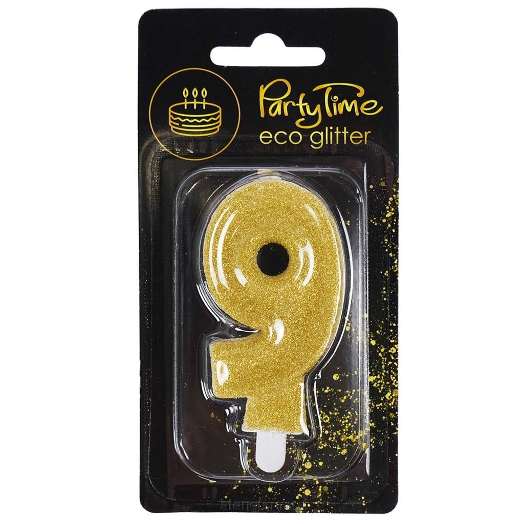 Świeczka cyferka z eko-brokatem nr 9