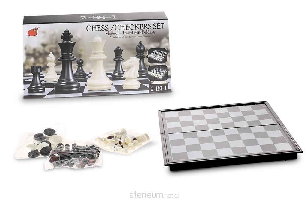 W zestawie: pudełko na figury z nadrukiem planszy, figury do szachów i warcabów, pozostałe informacje: wym. opak. 25,5 x 13 x 4 cm, 6+