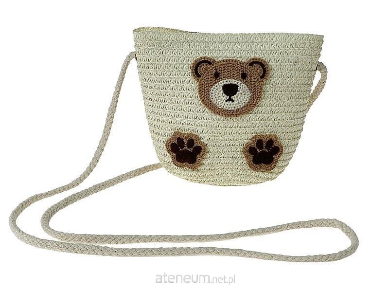 Torebka na ramię z rafii Miś, 12,5x15x6,5cm.