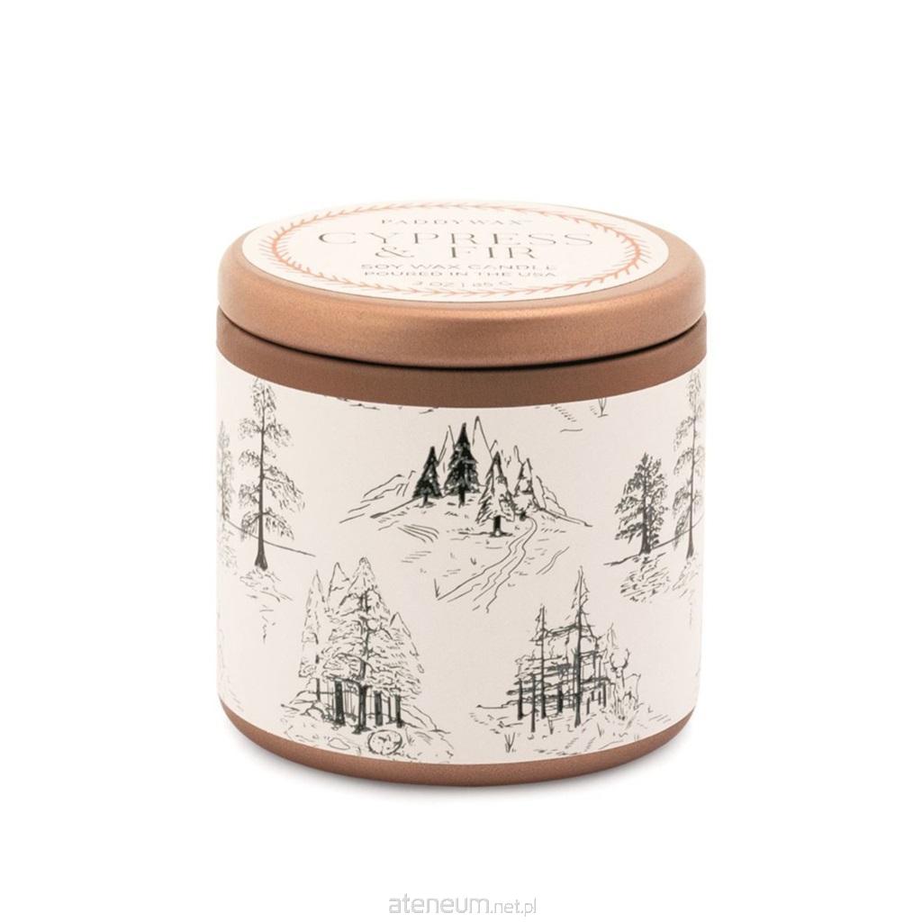 Świeca sojowa Cypress & Fir Copper Tin + White Label With Green Toile Pattern (85g) | PADDYWAX