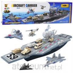 Duży lotniskowiec wojskowy myśliwce czołgi pojazdy