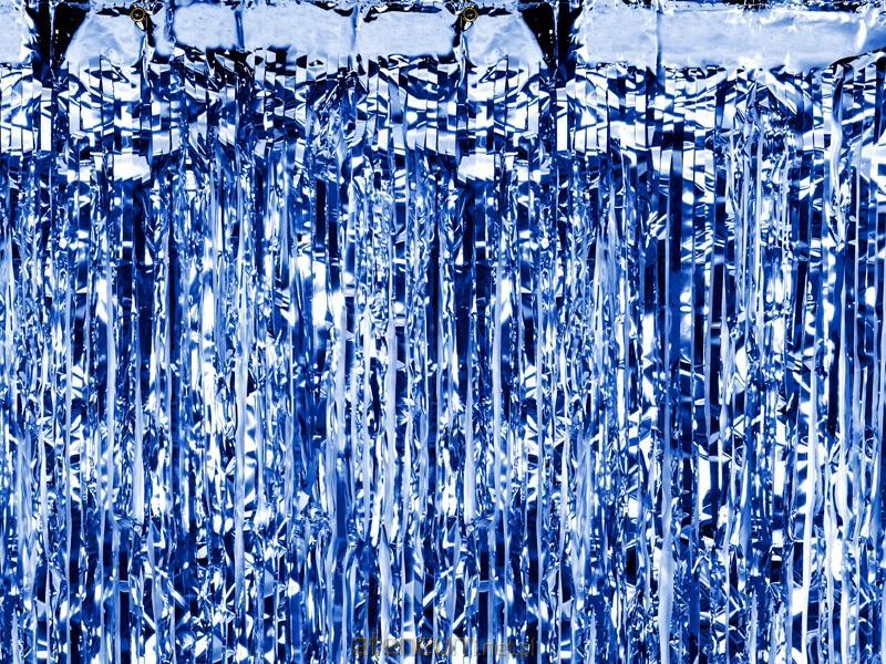 Kurtyna Party w kolorze niebieskim, szerokość około 90 centymetrów, wysokość około 250 centymetrów.
