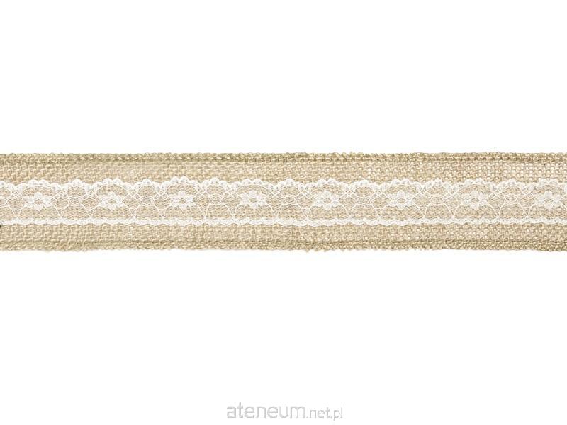 Taśma jutowa z koronką, szerokość ok. 5 cm, długość ok. 5 m.