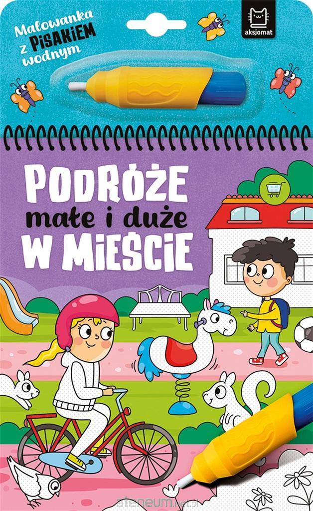 Użyj magicznego pisaka i odwiedź z nami mieszkańców miasta! Sprawdź, co kryje się za białymi stronami i poznaj ciekawe miejsca. Na kartach tej książeczki zabieramy cię na spotkanie z gołębiami przy fontannie, zobaczymy ruchliwe ulice, by potem udać się do parku i karmić kaczki, a następnie bawić się w parku na placu zabaw lub jeździć na hulajnodze i karmić wiewiórki. Wystarczy tylko napełnić wodą pisak i malować nim dokładnie całą kartę. Po chwili pojawi się ilustracja - poproś dorosłego lub sam przeczytaj wierszyk i spróbuj rozwiązać podane zadania. Kiedy pozostawisz książkę na kilka minut do wyschnięcia, kolory z powrotem znikną, a ty możesz rozpocząć zabawę od nowa. Książeczki "Malowanka z pisakiem wodnym" to doskonała zabawa na długie godziny, która rozwija sprawność manualną malucha i pobudza jego wyobraźnię. Zadania pomogą w doskonaleniu koncentracji i kreatywności dziecka. Dzięki ciekawej i oryginalnej formie są doskonałym pomysłem na prezent. Użyj wody i baw się kolorami! Dołączony do książki pisak wystarczy napełnić wodą i można już rozpocząć zabawę - na zwilżonych mokrym pędzelkiem stronach pojawią się kolorowe ilustracje. Znikną, kiedy strona wyschnie. Książką można bawić się wiele razy. Po zabawie należy wylać wodę z pisaka i schować go do opakowania. Dodatkową atrakcją są zamieszczone na kartach wierszyki i zagadki oraz ćwiczenia w szukaniu elementów.