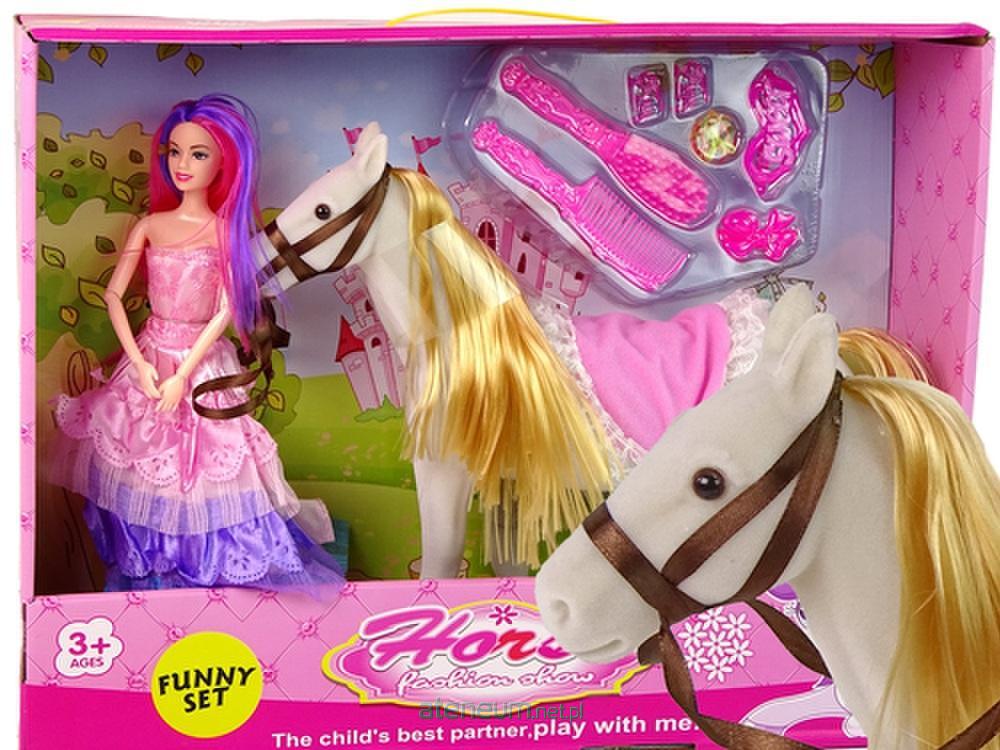 Lalka Księżniczka z Białym Kucykiem Figurki Akcesoria Zestaw idealny do uzupełnienia kolekcji maluchów. Zabawka lalki z koniem wprowadzi Twoje dziecko w świat baśni. Zestaw pobudzi nie tylko fantazję, ale również zdolności manualne dzieci, które będą mogły bawić się wiele godzin. Twoje dziecko nauczy odpowiedzialności i troski o zwierzęta. Lalka księżniczka ma zginane ręce i nogi, co pozwala na ustawienie jej w dowolnej pozycji, stojąc czy siedząc na koniu. Ubiór lalki jest bardzo elegancki, jak przystało na prawdziwą księżniczkę. Konik wykonany jest z przyjemnego w dotyku materiału. Figurka wiernie oddaje rzeczywisty wygląd zwierzęcia. W zestawie znajduje się szczotka, jak i grzebień oraz inne akcesoria do włosów, które umożliwią dbanie o konika, czesanie lub wykonanie przepięknych fryzur na jego jasnej, długiej grzywie. Czas na długą i ekscytującą przejażdżkę do świata baśni i magii. Zestaw zawiera: - białego konia - lalkę księżniczkę w sukience - grzebień i szczotkę w kolorze różu - spinki 2x - buciki dla lalki - gumki do włosów Wymiary lalki księżniczki: 30 cm x 4 cm x 10 cm Wymiary figurki konia: 34 cm x 9 cm x 31 cm Wymiary pudełka: 49 cm x 12 cm x 37 cm Zabawki przeznaczone są dla dzieci powyżej 3. roku życia. Figurki posiadają certyfikat CE i są zgodne z normą EN 71. Zapakowane jest w kartonik, dzięki czemu nadaje się idealnie na prezent.