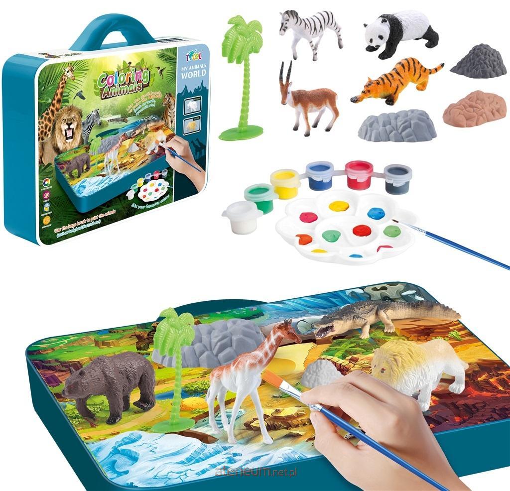Zestaw zwierzątek ZOO oraz akcesoriów do malowania z farbami zapakowany w walizkę.