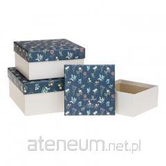 Zestaw trzech pudełek ozdobnych (duże, średnie i małe). Solidna konstrukcja i ekskluzywne wykończenie, pozwolą na organizację domowych drobiazgów lub sprawdzą się jako eleganckie opakowanie na prezenty.