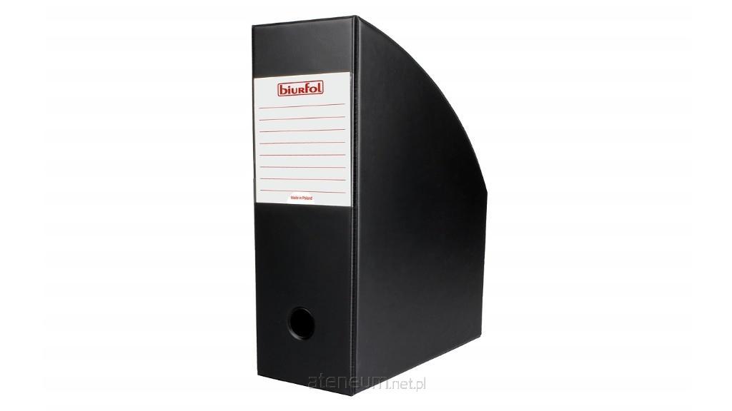 Wykonany z kolorowej folii PVC, wewnątrz usztywniony tekturą. Format A4 o ściętych bokach. Wyposażony w kieszonkę z wymienną etykietą opisową na grzbiecie. Okrągłe wycięcie na palec pozwalające na łatwe wysuwanie pojemnika. Szerokość grzbietu 10 cm.