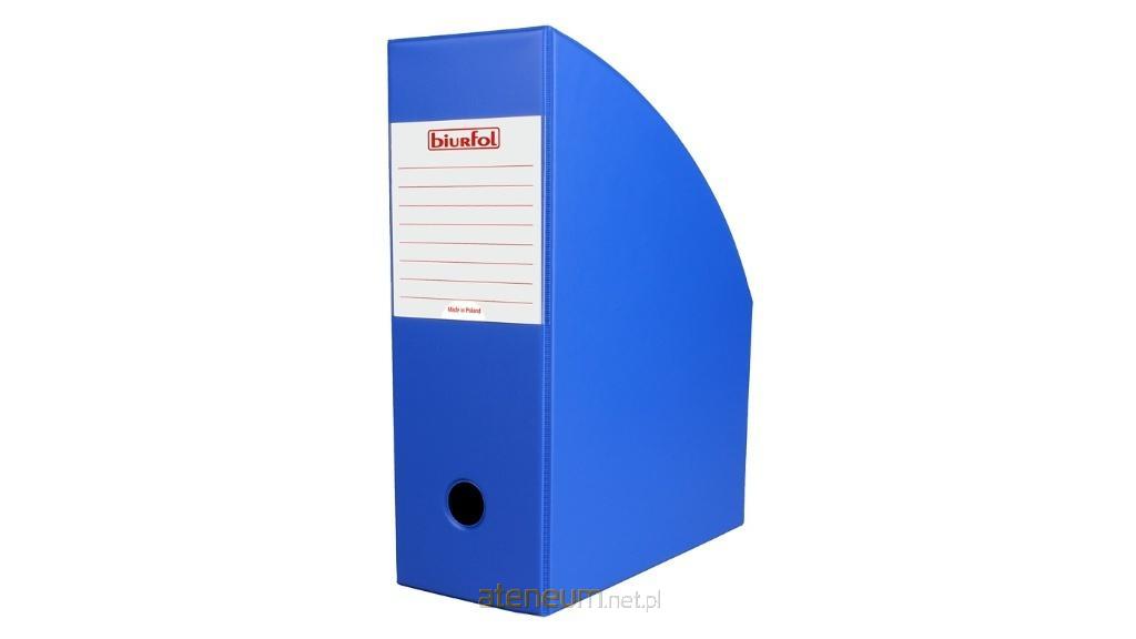 Wykonany z kolorowej folii PVC, wewnątrz usztywniony tekturą. Format A4 o ściętych bokach. Wyposażony w kieszonkę z wymienną etykietą opisową na grzbiecie. Okrągłe wycięcie na palec pozwalające na łatwe wysuwanie pojemnika. Szerokość grzbietu 10 cm.