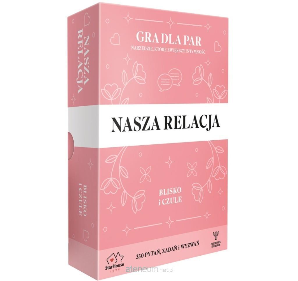 Podstawą każdej udanej relacji jest intymność, ale rozwijanie namiętności i zaangażowania jest równie ważne. NASZA RELACJA: BLISKO I CZULE została zaprojektowana tak, by wzmacniać wszystkie te aspekty dzięki pytaniom, zadaniom i wyzwaniom przygotowanym przez psychologów z wieloletnim doświadczeniem. Aż 110 kart zawiera 330 pytań i zadań, które pomogą Wam lepiej się poznać, zbudować zaufanie i odkryć nowe sposoby okazywania czułości. Gra staje się inspirującym przewodnikiem, który krok po kroku prowadzi Was ku głębszemu zrozumieniu i jeszcze większej bliskości. Nawet jeśli wydaje Wam się, że wiecie o sobie wszystko, ta gra z pewnością Was zaskoczy i dostarczy chwil pełnych pozytywnych emocji.