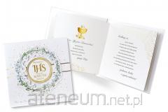 Zaproszenie w formacie kwadratu 1 5x 15 cm. Front złocony, w zestawie z wysokiej jakości kopertą. Pakowane po 5 sztuk.