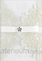 Zaproszenie w formacie kwadratu 1 5x 15 cm. Front złocony, w zestawie z wysokiej jakości kopertą. Pakowane po 5 sztuk.