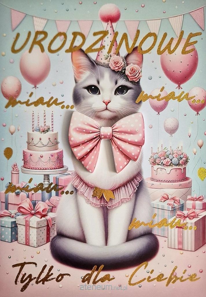 Karnet B6 brokat z kopertą Urodziny Kot w koronie