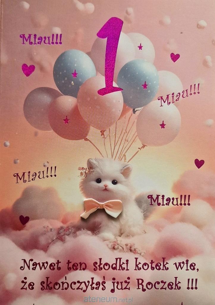Karnet B6 Urodziny Roczek (chmurka różowa)