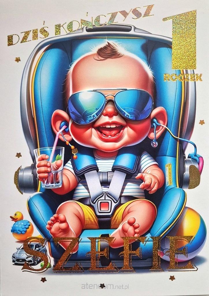 Karnet B6 Urodziny Roczek (chmurka niebieska)