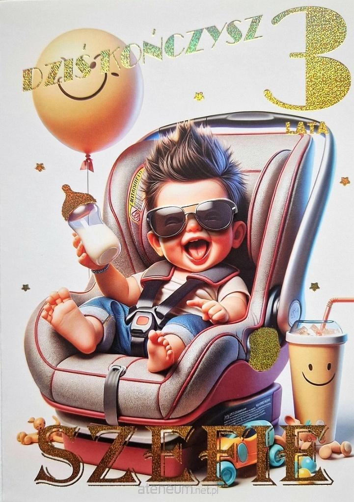 Karnet 3K to bogato zdobiony karnet z elementem naklejanym oraz złoceniem. Karnet to doskonały dodatek do prezentu. Karnet zawiera również zabawne życzenia.
