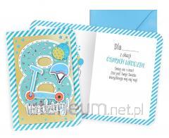 Karnet 3K to bogato zdobiony karnet z elementem naklejanym oraz złoceniem. Karnet to doskonały dodatek do prezentu. Karnet zawiera również zabawne życzenia.
