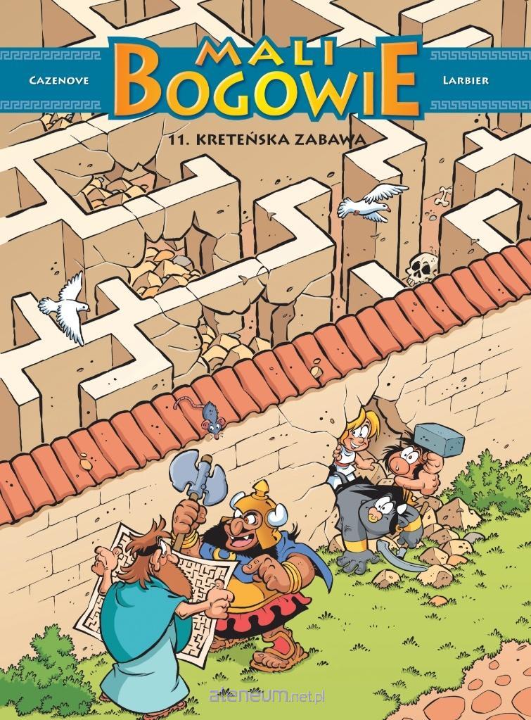 Jedenasty album wesołych przygód niezbyt rozgarniętych kandydatów na bogów i herosów starożytnego Olimpu. Tym razem dokazują na Krecie - wyspie tajemnic i mitów, gdzie król Midas kazał Dedalowi wznieść labirynt, aby uwięzić w nim strasznego Minotaura... Czy naprawdę tak strasznego, sami się przekonamy. Tymczasem nasi bohaterowie nie zważają na tradycję i poważne sprawy! Stroją sobie żarty ze wszystkich: urządzają śmietnik na głowie Zeusa, próbują usmażyć Starca Morskiego na grillu i wygłupiają się przed sędzią krainy umarłych. Mali bogowie pod wodzą postrzelonego Tauruska są utrapieniem niebian z Olimpu! Autorami historii o psotnych istotach z mitów są scenarzysta Christophe Cazenove, znany w Polsce z serii "Sisters", "Kasia i jej kot", "Zoo wymarłych zwierząt" i "Zombiaczek", oraz rysownik Philippe Larbier, który stworzył ilustracje do takich humorystycznych opowieści jak "Chats, chats, chats" czy "Nina" oraz scenariusz kryminalnego cyklu dla dzieci "Les Enigmes de La".