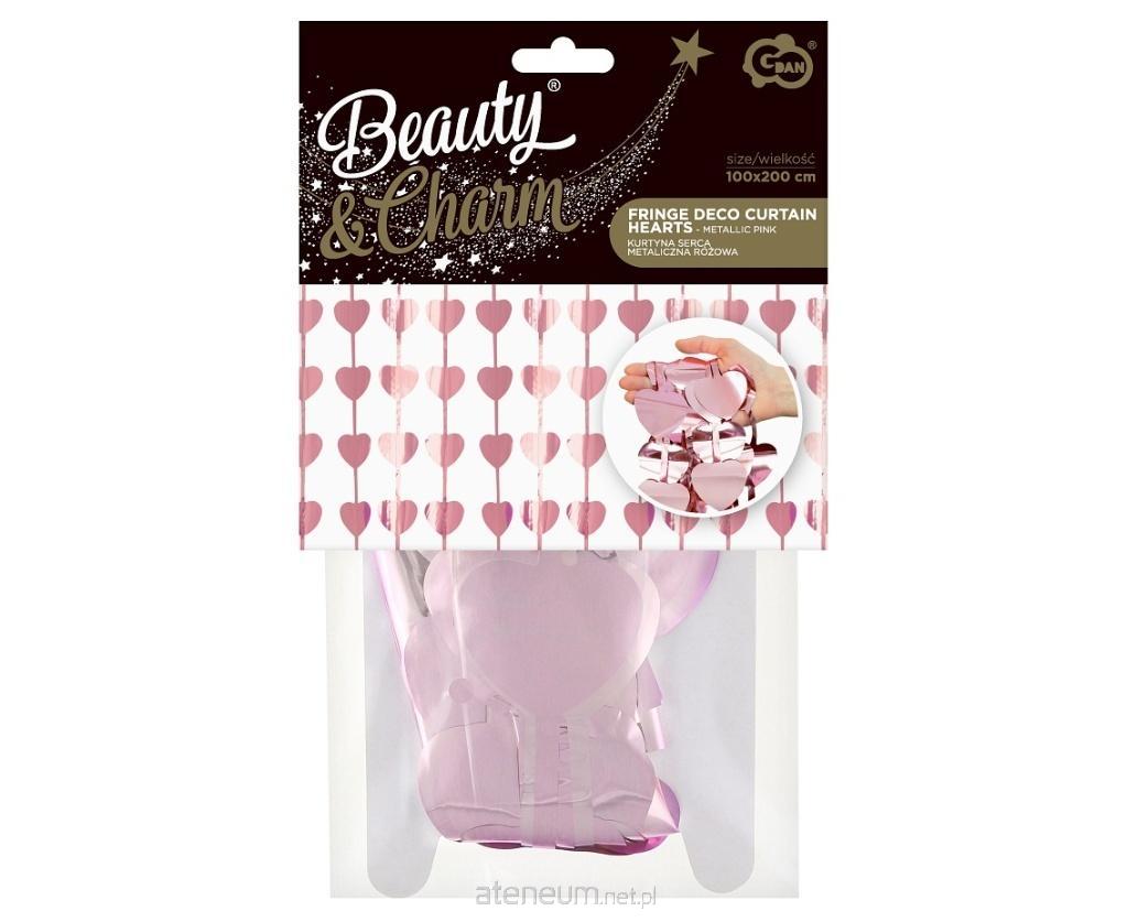 Kurtyna B&C serca metaliczna różowa 100x200cm