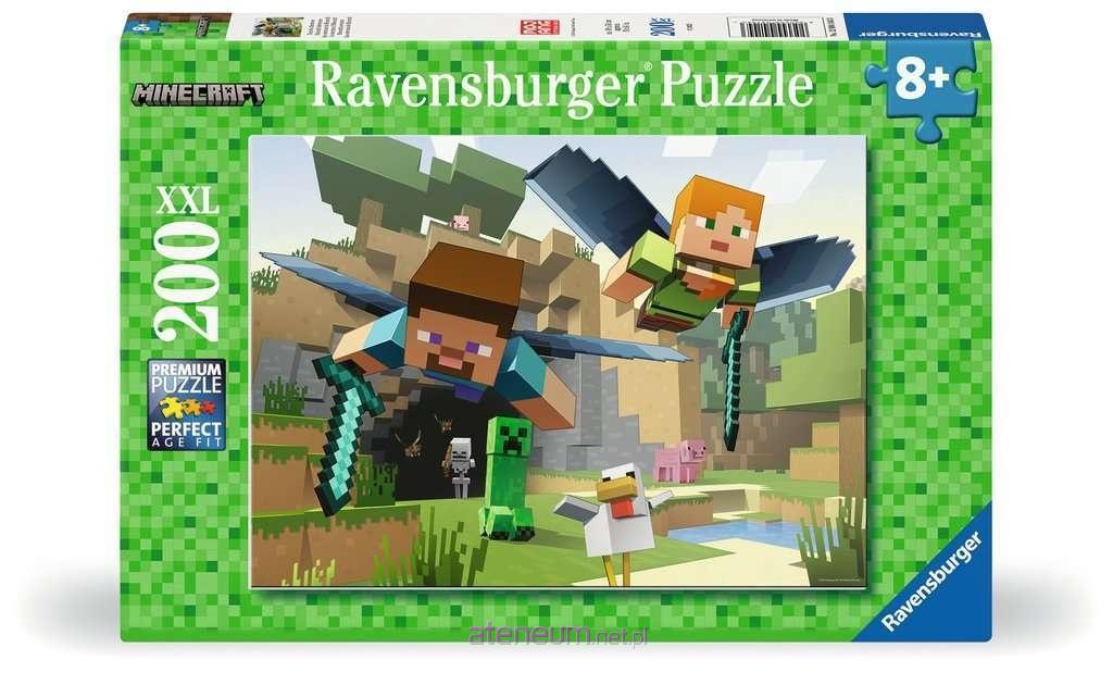 Minecraft 200 XXL. Odkryj idealne dopasowanie! Ravensburger ma puzzle idealne dla każdego dziecka. Dzięki ciekawym motywom i strategicznym rozmiarom elementów oraz różnorodności formatów gwarantowany jest sukces dla wszystkich grup wiekowych i poziomów trudności. Ciesz się jakością Ravensburger dzięki tej przyjaznej rodzinie aktywności! Od 8 lat.