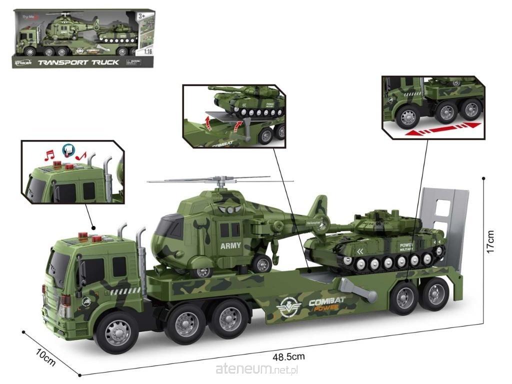 Auto laweta wojskowa + pojazdy x2 światło, dźwięk open box 52x11,5x21cm