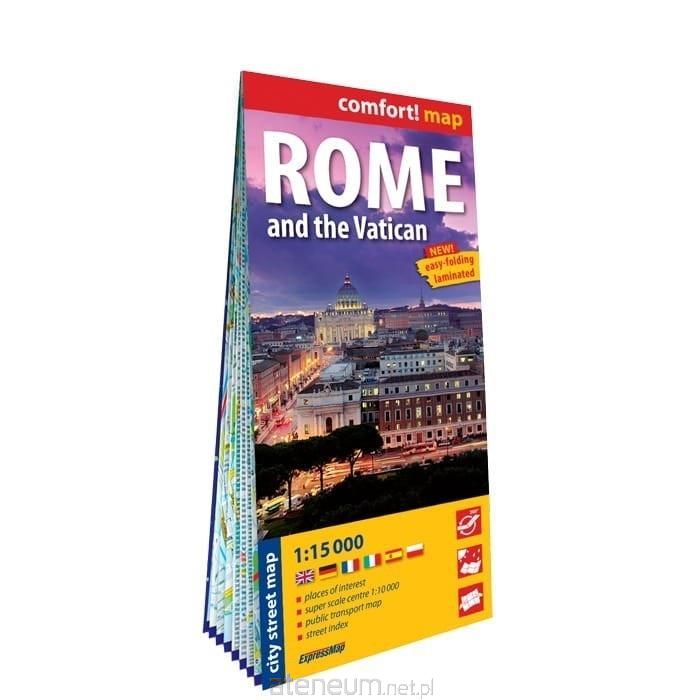 Starożytne zabytki na Forum Romanum, rozsławiona przez kino Fontanna di Trevi i dostojne bazyliki. Dwustronnie laminowany, wygodny w składaniu plan interesujących dla turysty, centralnych dzielnic Rzymu w szczegółowej skali 1:15 000 (1 cm 150 m) pomoże odkryć uroki Wiecznego Miasta.