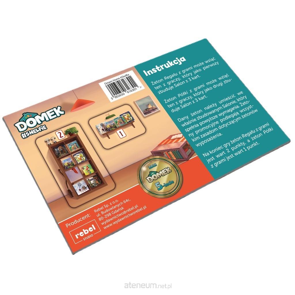 Nie lada gratka dla każdego fana planszówek! Domek: #Shelfie to specjalnie rozszerzenie, dzięki któremu wprowadzisz do swoich rozgrywek akcent związany z naszym ulubionym hobby. Zestaw zawiera 2 żetony wyposażenia, które otrzymujemy po zbudowaniu Salonu złożonego z 3 kart. Na pierwszego gracza czeka regał wart 2 punkty, a druga osoba otrzyma półkę o wartości 1.