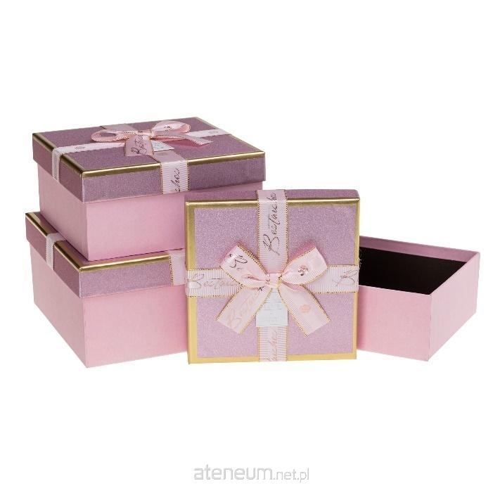 Pudełko prezentowe z kokardą 3szt różowy ROZETTE