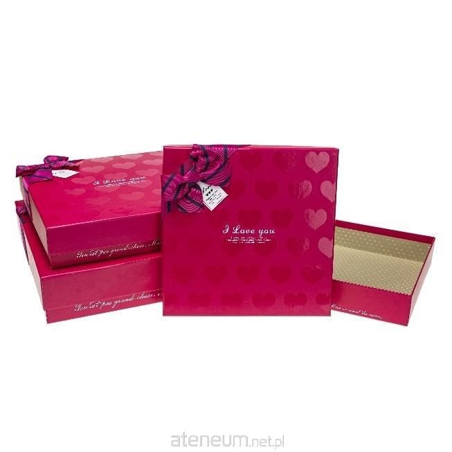Pudełko prezentowe z kokardą 3szt czerwony ROZETTE