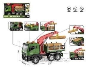 Auto przewóz drewna z dźwigiem 1:10 światło dźwięk 31.5x12.5x16 cm open box 38x13.5x21 cm
