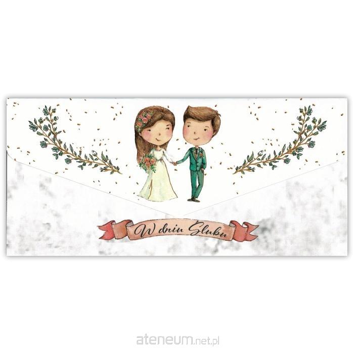 Po złożeniu format kartki DL, wyjątkowe złocenia, w środku życzenia i kieszonka na pieniądze. Dodatkowa koperta