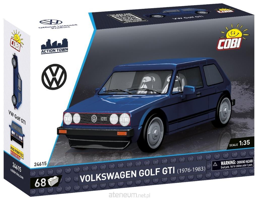 COBI- 24615 Volkswagen Golf GTI (1976-1983) ACTION TOWN 68 elementy Grupa wiekowa 5+ Skala: 1:35 Zestaw konstrukcyjny COBI Volkswagen Golf GTI (1976-1983), w niebieskim kolorze, to jedno z najważniejszych aut w historii motoryzacji. Dzięki wiernemu odwzorowaniu detali model ten jest doskonałą repliką, która zadowoli zarówno pasjonatów motoryzacji, jak i miłośników budowania z klocków. Model w skali 1:35 zachwyca precyzyjnym odwzorowaniem charakterystycznych cech Golfa GTI: poszerzonymi błotnikami, szerokimi gumowymi oponami oraz dużym, przednim spojlerem. Zestaw składa się z 68 elementów, które dostarczą radości zarówno fanom motoryzacji, jak i osobom lubiącym wyzwania konstrukcyjne. Zestaw COBI to coś więcej niż tylko model - to prawdziwa przygoda! Budowanie tego legendarnego auta to doskonała okazja, by połączyć pasję do motoryzacji z kreatywną zabawą klockami. Dzięki przejrzystej instrukcji każdy niezależnie od wieku, może łatwo złożyć model i cieszyć się efektami swojej pracy. Po złożeniu Volkswagen Golf GTI staje się świetnym elementem dekoracyjnym - można dumnie postawić go na półce w swoim pokoju, obok innych modeli aut od COBI. A jeśli masz ochotę na emocjonujące wyścigi, z łatwością zabierzesz go ze sobą w podróż lub zorganizujesz zawody z przyjaciółmi. Zestaw COBI Volkswagen Golf GTI to obowiązkowy element dla każdego fana motoryzacji i konstruowania z klocków. Stwórz model tej sławnej maszyny, która na zawsze odmieniła świat sportowych aut i rozwijaj swoją kolekcję kultowych Volkswagenów od COBI, uzupełniając ją o inne modele i kolory. 68 wysokiej jakości elementów, Wyprodukowane w UE przez firmę z ponad 35-letnią tradycją, Spełniają normy bezpieczeństwa dotyczące produktów dla dzieci, W pełni kompatybilne z innymi markami klocków konstrukcyjnych, Czytelna i intuicyjna instrukcja oparta na rysunkach i ikonach, Wymiary zestawu: 11,0 4,0 6,5 cm Wymiary pudełka: 20 5,09 14,0 cm