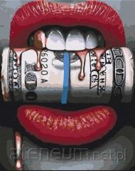 Malowanie po numerach - Seksowne usta z pieniędzmi