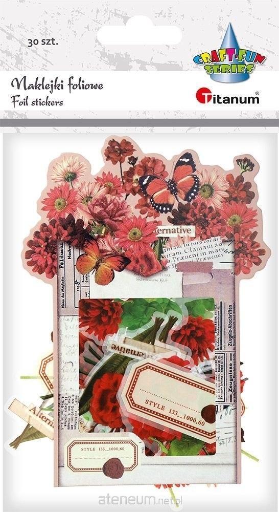 Naklejki foliowe w okładce tonacja czerwona kwiaty 9 wzorów po 3szt., etykiety retro 3szt. 30szt.