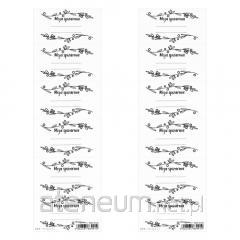 Instrukcja: wytnij element, który chcesz użyć, usuń tylną, przezroczystą folię, przyklej element do powierzchni, dociśnij go - a następnie potrzyj, usuń przednią, przezroczystą folię.