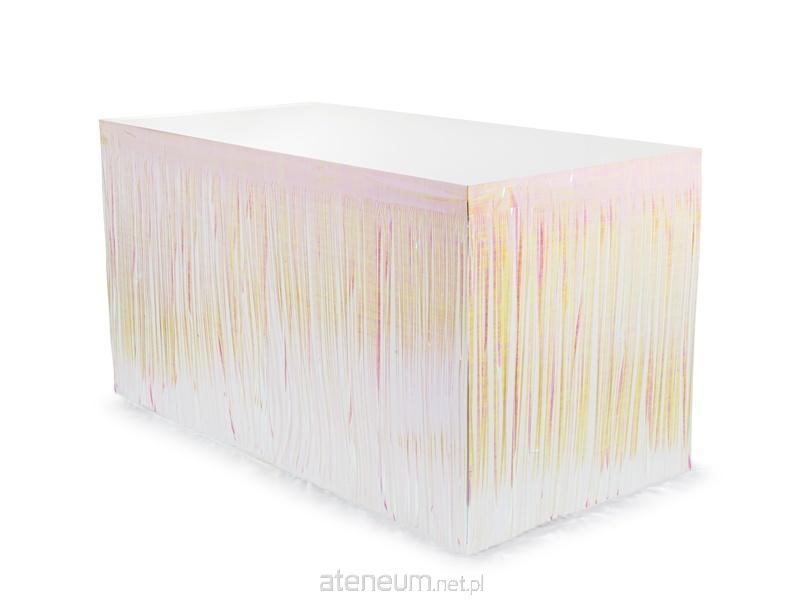 Skirting foliowy z frędzlami w kolorze opalizującym, szerokość ok. 300 cm, wysokość ok. 80 cm.