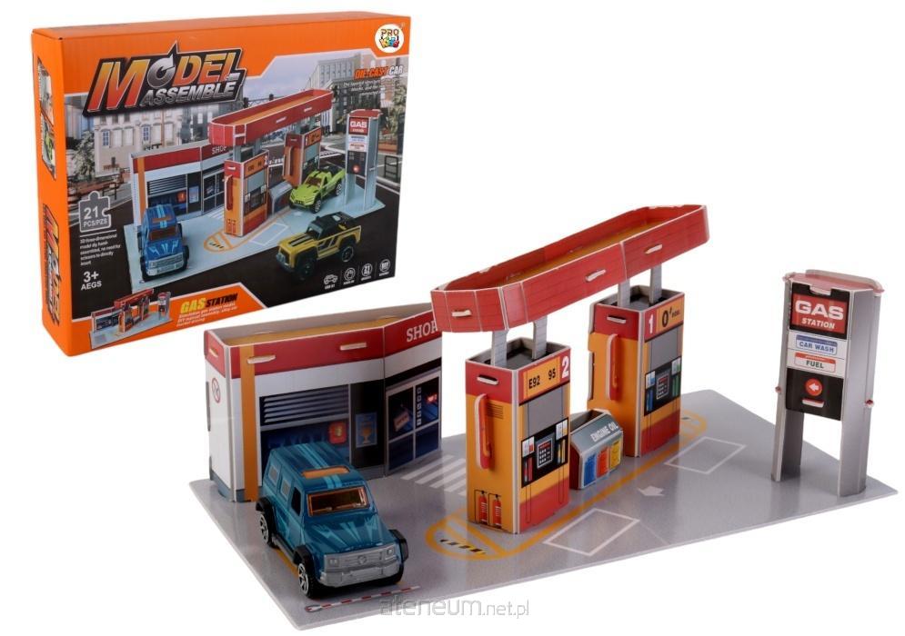 Materiał: Metal (autka), plastik i tektura (stacja benzynowa).