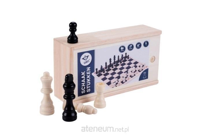 32 figury szachowe w pudełku z drewna jesionowego. Figury szachowe są czarne i mają naturalny kolor. Wysokość króla: 77 mm. Zestaw nie zawiera planszy
