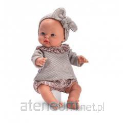 Winylowa lalka hiszpańska Pablo 0367851 to wyjątkowa propozycja od cenionej marki ASI. Realistycznie wyglądający, 43-centymetrowy chłopiec zachwyca wysoką jakością wykonania i pogodną buzią. Został wykonany w całości w Hiszpanii, z przyjemnego w dotyku, miękkiego i bezpiecznego winylu. Bobas ma wyraźnie zaznaczoną płeć oraz pępek. Doskonale sprawdza się także podczas zabawy w kąpieli. Jest przeznaczony dla maluchów w wieku od 3 lat. Ekskluzywna hiszpańska lalka ASI Pablo jak prawdziwe dziecko Dzięki skrupulatnie dopracowanym detalom lalka hiszpańska ASI Pablo 0367851 wygląda jak żywe niemowlę: niebieskie oczy o głębokim spojrzeniu opatrzone są długimi rzęsami i ręcznie malowanymi brwiami, zwracają uwagę lśniące usteczka i rumieńce na policzkach, główka posiada wyrzeźbione, typowo niemowlęce włosy, nóżki i rączki mają delikatne fałdki oraz wyrzeźbione paznokcie, Bobasa można posadzić lub położyć w różnych pozycjach dzięki ruchomym kończynom i głowie. Pablo inspiruje dzieci do kreatywnej zabawy i wcielania się w rolę troskliwego opiekuna. Lalka hiszpańska Pablo w oryginalnym opakowaniu prezentowym Pablo jest ubrany w ręcznie szyte, bawełniane jasnobeżowe śpioszki w delikatne kropeczki. Dzięki zastosowaniu zapięcia na rzep łatwo jest ubranko zdjąć. Zielony ciepły płaszczyk z kapturem, ozdobiony guziczkami, przyda się w chłodniejsze dni. Zabawę urozmaica butelka. Oryginalne, designerskie opakowanie z wieczkiem może spełniać rolę łóżeczka dla bobasa.