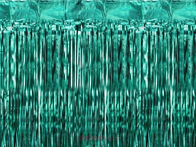 Kurtyna Party satynowa w kolorze butelkowej zieleni, szerokość ok. 100 cm, wysokość ok. 200 cm.