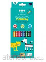 Kredki ołówkowe z gumką 12 kolorów BEBE Kids