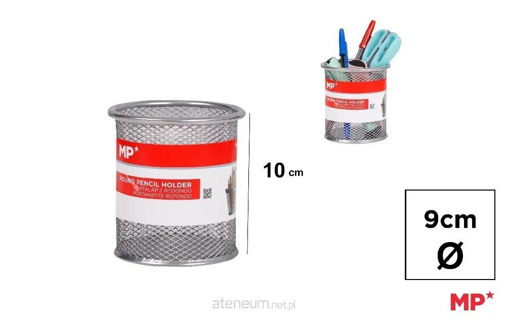 Pojemnik na długopisy siatkowy okrągły srebrny