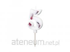 Świeczka urodzinowa cyfra 5 biała z płatkami 8cm