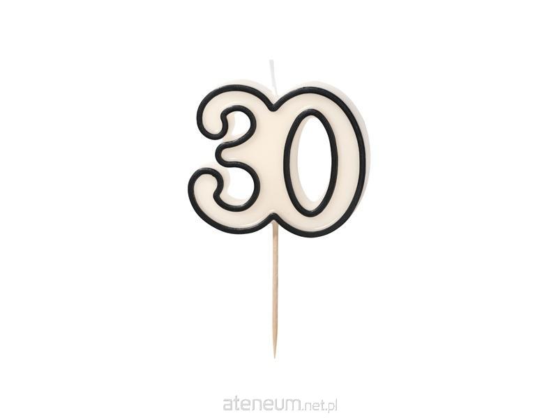 Świeczka urodzinowa liczba 30, kolor biało-czarny, wysokość ok. 5,5 cm
