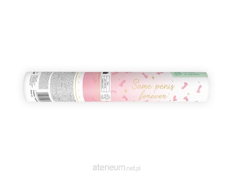 Tuba strzelająca bibułowymi penisami w kolorze jasnoróżowym, długość 20 centymetrów.