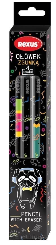 Ołówki drewniane z gumką. 4 szt w kartoniku.