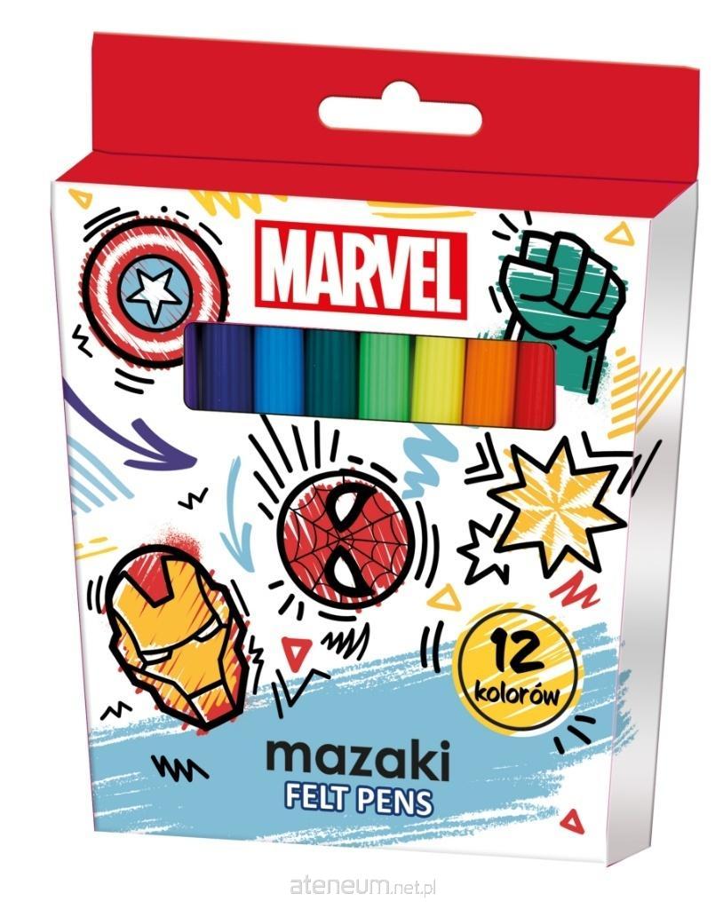 Zestaw 12 mazaków w wygodnym kartoniku. Intensywne kolory gwarantują wykonanie efektownych prac.