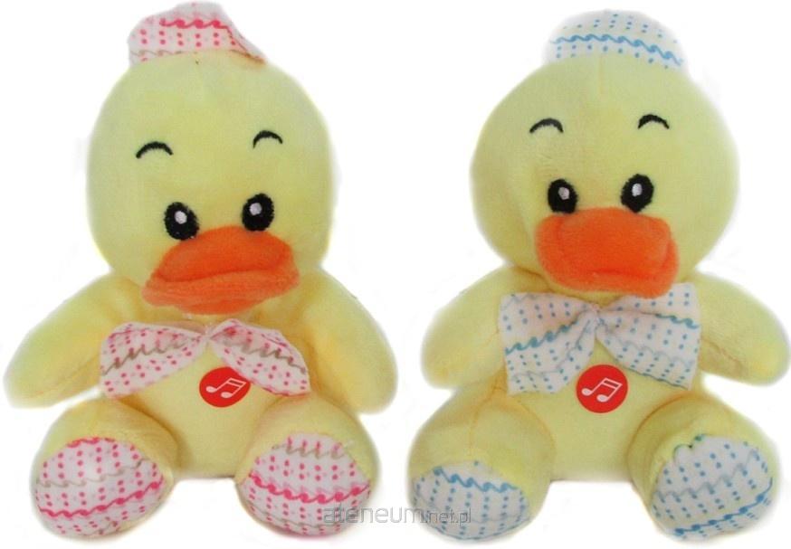 Maskotka kaczuszka z kokardą - pluszak na wyjątkowe okazje. Wielkość: 14cm. Zabawka posiada przycisk dźwiękowy - wydaje głos po naciśnięciu. Cena dotyczy 1 sztuki.