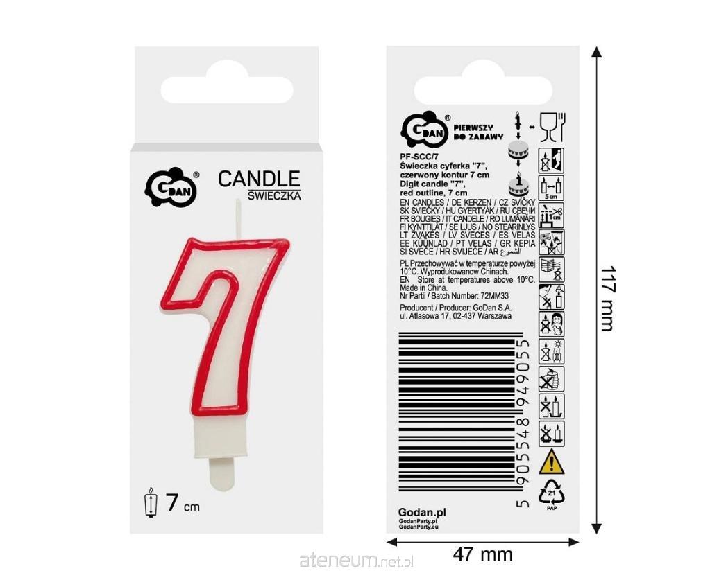 ŚWIECZKA CYFRA 7, CZERWONY KONTUR