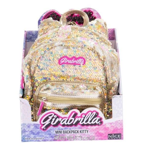 Girabrilla plecak cekinowy kotek. Małe uszka, kieszonki boczne, kieszeń na zamek z przodu. Estetyczne wykończenie, w otwartym kartoniku.